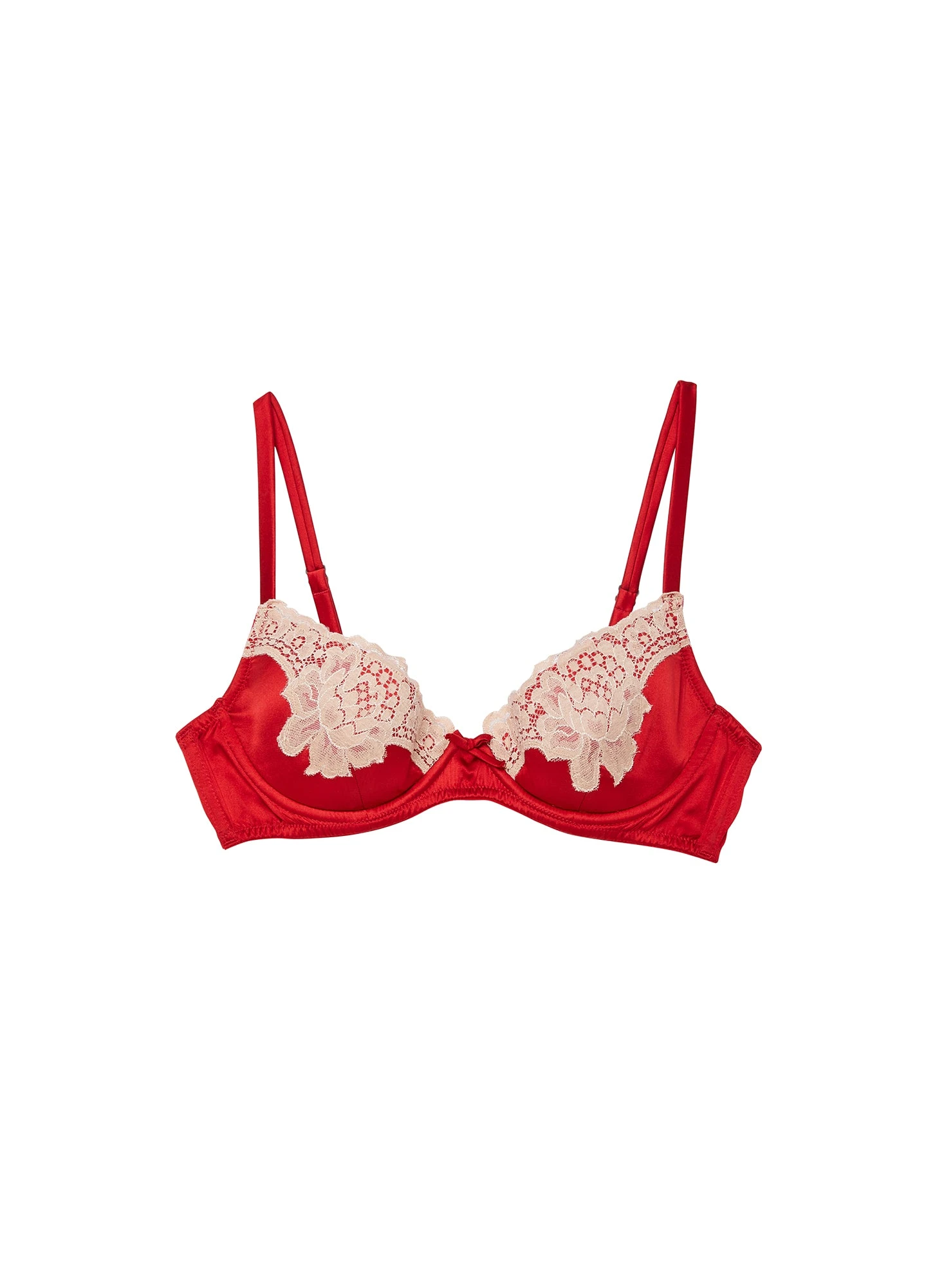 Our quintessential lace bra offers everyday support and structure with underwire cups, adjustable straps, and lace trim. Built-in padding provides subtle shape and lift. Finished in scalloped lace that gently hugs your bust. Pair with the matching James Lace Cheeky and Garter.