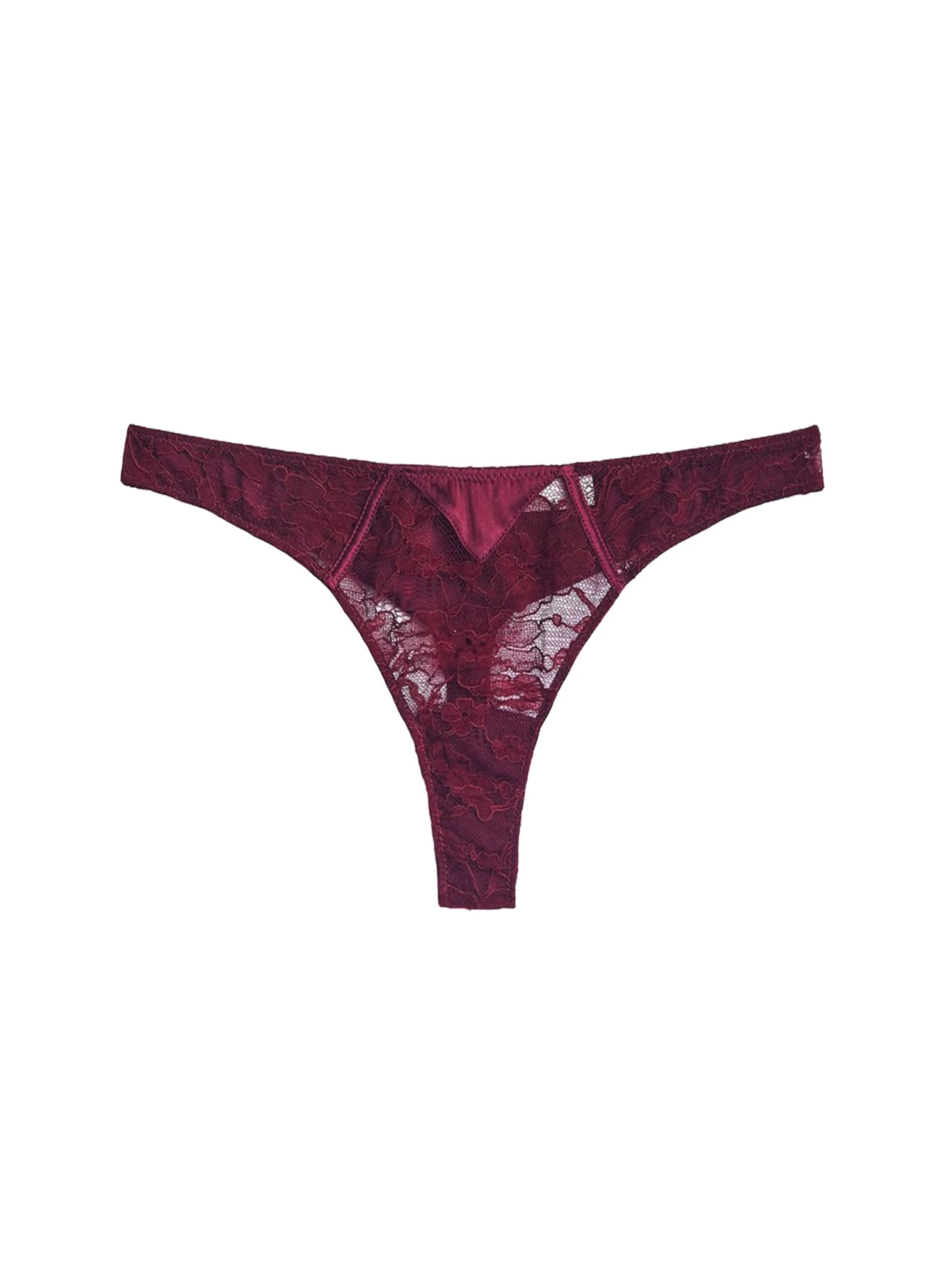 Our Magnolia Lace Thong cut from stunning stretch French leavers lace. Features a lace front and a smooth, stretch silk thong back with a playful keyhole detail. Cut from stretch French Leavers Lace. Pair with the matching Magnolia Lace Unlined Demi for the perfect everyday set.