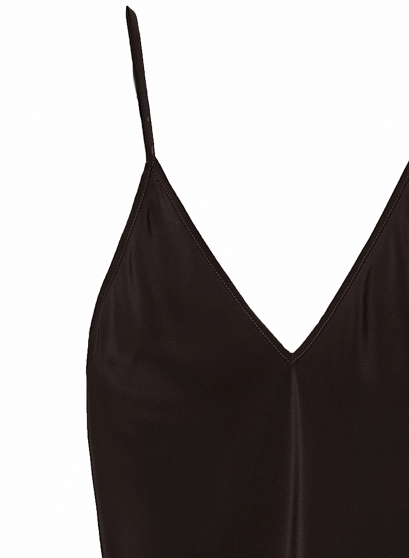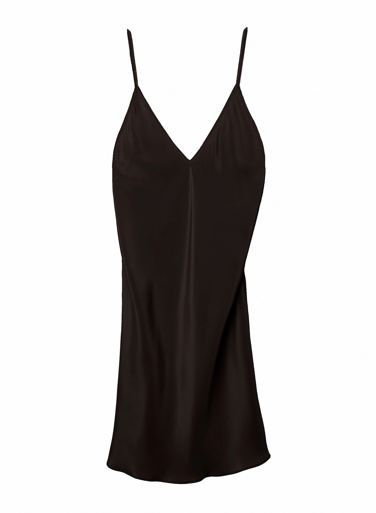 Your essentiel everyday slip. Bias cut with adjustable straps and low plunge v-neck. Hits mid thigh. Take this look from the bedroom to the bar by layering it over your favorite bodysuit.