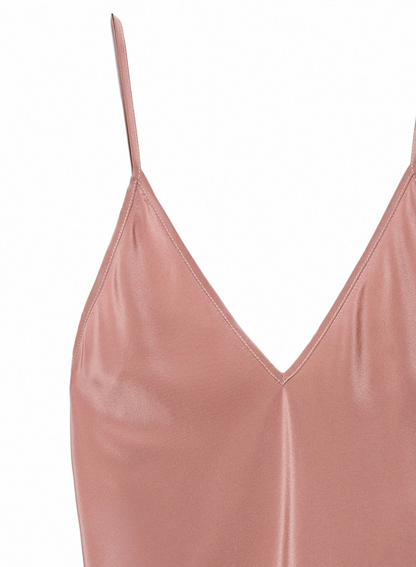 Your essentiel everyday slip. Bias cut with adjustable straps and low plunge v-neck. Hits mid thigh. Take this look from the bedroom to the bar by layering it over your favorite bodysuit.