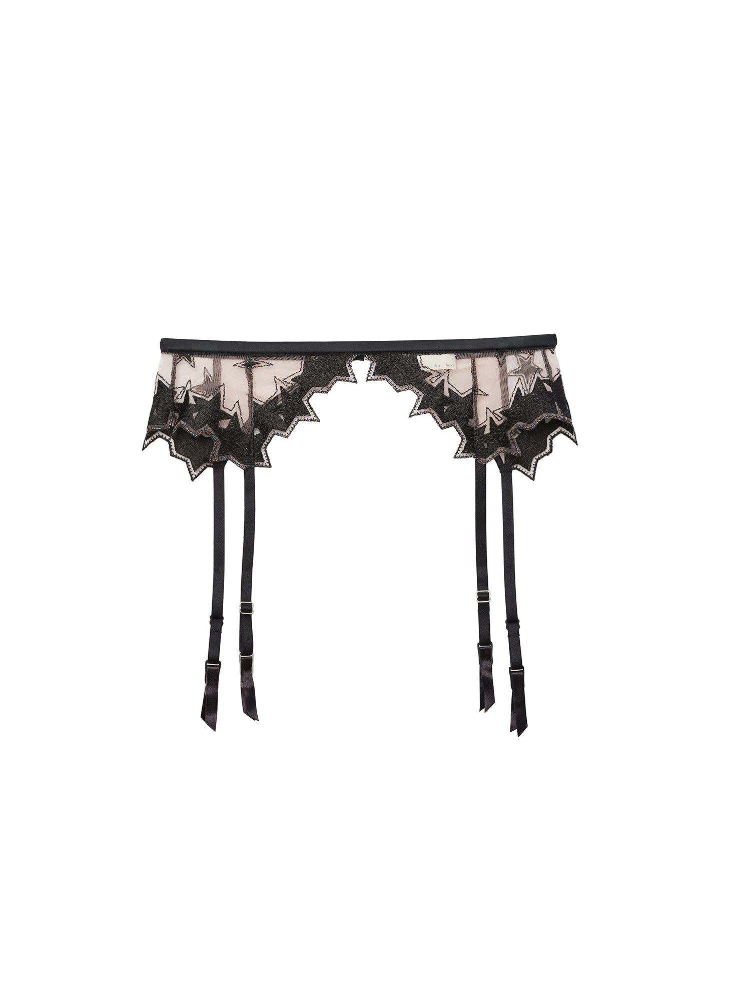 Shine bright. Our Super Star Embroidery Garter Belt is the perfect addition to amp up your lingerie set. Features custom Italian embroidery with shimmering thread and flirty scalloped edge. Center back closure sits at waist. Pair with the matching Super Star Embroidery Demi Bra and Thong for an immaculate set.